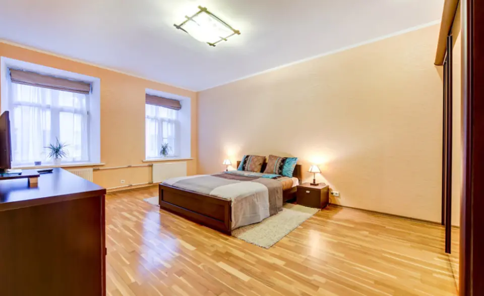 Просторная и светлая квартира, расположенная в самом центре Санкт-Петербурга, возле Аничкова моста через реку Фонтанку. Окна выходят во двор, поэтому дома всегда тихо, при этом дом расположен на Невском проспекте. Парковка во дворе дома