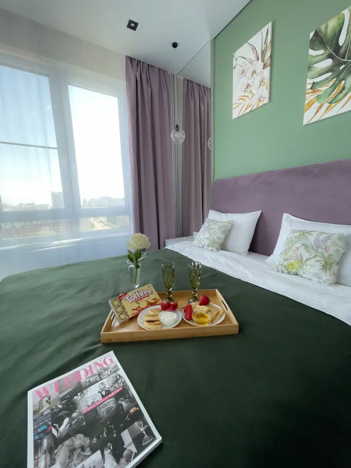 🔹Отдельной "воздушной спальни" , с кроватью 160*200 и красивым видом на деловую часть города.