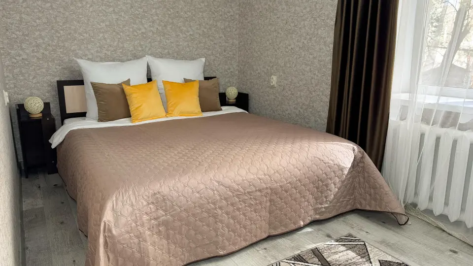 🧡Вы просыпаетесь в уютной спальне на двуспальной кровати с ортопедическим матрасом, чувствуя себя отдохнувшим и полным сил. За окном – тихий утренний Кисловодск, а впереди – день, полный новых впечатлений.