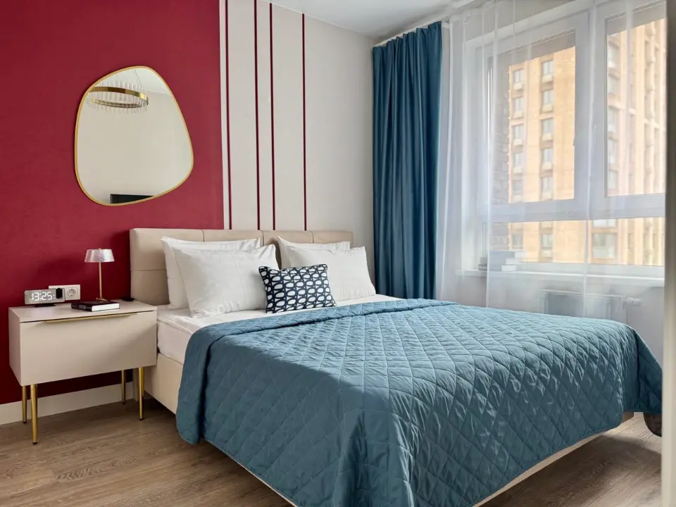 Стильная 2-комнатная квартира под названием Wow-House, площадью 38,4 м², расположенная на 13-м этаже в МФК Тропарёво парк, рассчитана на размещение до 4-х гостей и оснащена одной двуспальной кроватью и диваном.