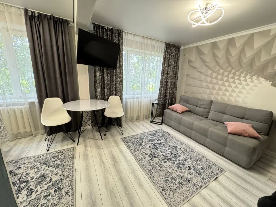 Однокомнатная квартира в центре города . 2 спальных раздельных места, двуспальная кровать и софа .Вся бытовая техника: стиральная машина , холодильник, микроволновая печь, утюг, телевизор. Трамвайные пути , автобусные остановки, центральная Почта , городской дворец культуры, Командоры , кафе, Олимп , Рекорд в шаговой доступности,