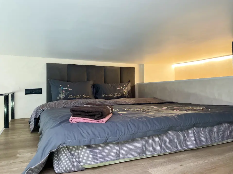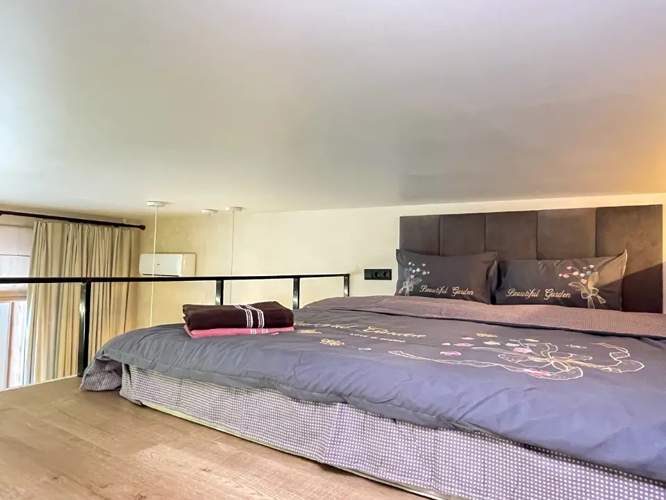 Спальные места - двуспальная кровать с ортопедическим матрасом и раскладной диван.