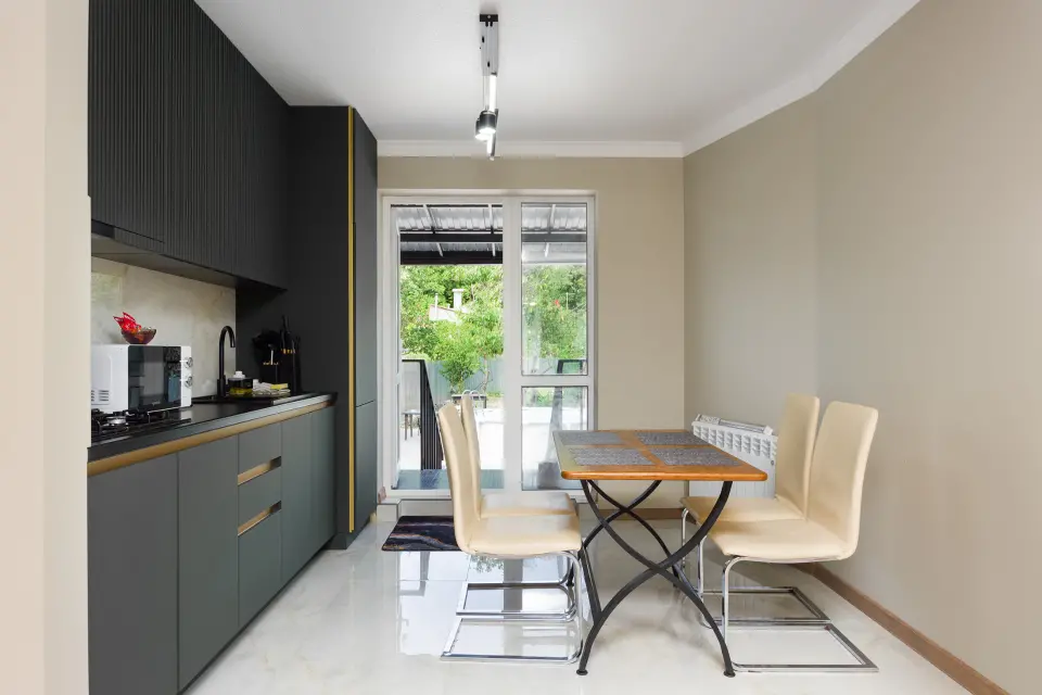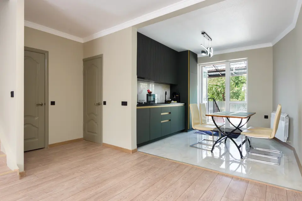 - В доме три раздельных спальни, кухня, совмещенная с большим залом с выходом во внутренний двор к бассейну и мангальной зоне