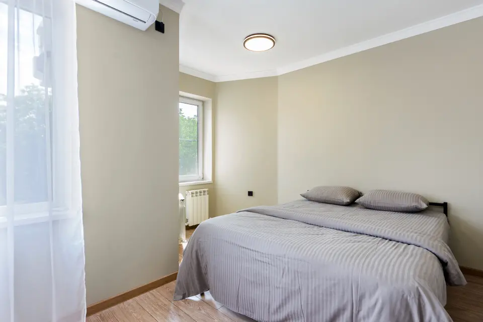 - Оборудован всем необходимым: 3 двуспальные кровати, 2 односпальных кровати и раскалдной диван, максимальное количество гостей 10 человек