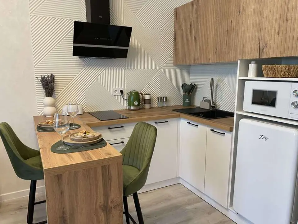❒ Полностью укомплектованная мебелью и посудой кухонная зона