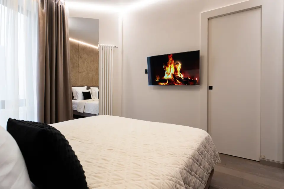- Просторная кровать с удобным матрасом, постельным бельем из страйп-сатина, словно обнимает теплом, создавая обстановку для полного расслабления. Панорамные окна наполняют пространство светом и предлагают восхитительный вид на городской пейзаж. Скоростной Wi-Fi и современное SMART TV.