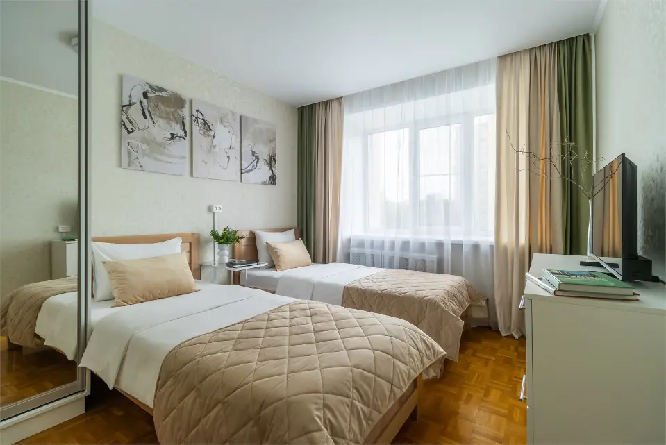 ДВУСПАЛЬНАЯ КРОВАТЬ + 4 ОДНОСПАЛЬНЫХ КРОВАТИ✨ ДО 6 ГОСТЕЙ ✔️Уютная квартира с 3 спальнями рядом с Нижегородской Ярмаркой. Расположена в районе с хорошо развитой инфраструктурой. В пешей доступности магазины, кафе, аптеки. ✔️5 раздельных спальных мест. Идеально подходит как для небольших поездок, так и для длительных командировок. Почему этот вариант от компании "Стрелка - гостевые квартиры" лучший для Вас⭐: ✅ Самостоятельное заселение/выезд в удобное для Вас время (установлен электронный замок); ✅ Кухня с плитой, духовкой, холодильником, чайником и микроволновкой; ✅ Посуда и кухонные принадлежности для приготовления и приема пищи; ✅ Телевизор, Wi-Fi; ✅ Лоджия; ✅ Чистое и отглаженное постельное белье и полотенца из собственной прачечной для каждого гостя; ✅ Фен, мыло, шампунь, гель для душа; ✅ Стиральная машина, а также все для стирки и глажки белья; ✅Бесплатная парковка во дворе. Платная парковка в пешей доступности; ✅ Хорошая транспортная доступность в любую часть города до любого предприятия и к достопримечательностям. Отличный вариант для комфортного пребывания в городе! ✅ У нас высокие стандарты уборки! Гарантируем чистоту и порядок. При длительном проживании промежуточные уборки и замена постельного белья и полотенец. ★Предоставляем полный пакет отчетных документов. ★Работаем с юридическими лицами и организациями. ★Оплата любым удобным способом. ПРАВИЛА ПРОЖИВАНИЯ: ✨При регистрации необходимо предоставить паспорт и подписать электронный договор. ✨Время заезда после 14:00, выезда до 11:00. Ранний заезд и поздний выезд возможен по предварительному согласованию ✨Перед заездом в квартиру взимается залог, возвращается в день выезда по результатам проверки квартиры и при условии соблюдения правил проживания ⛔Курение, в том числе электронных сигарет и кальяна, в помещении запрещено! ⛔Только для тихого проживания, мероприятия, вечеринки и громкие посиделки запрещены! Подapитe ceбe комфортный oтдыx со вcеми удобcтвaми в Апaртамeнтаx "Стрелка"! ▸200 метров до продуктового магазинов "Spar", "Пятерочка", Красное&Белое; ▸400 метров до Нижегородской ярмарки - крупнейшая ярмарка Российской Империи, центральный выставочный центр Нижнего Новгорода; ▸ 1 км до станций метро "Московская" и "Стрелка", ▸ 1 остановка на метро до исторического центра города (10 минут на авто или 20 минут на маршрутном такси); ▸1,5 км до Футбольного Стадиона, Стрелки (слияния Оки и Волги), Пакгаузов и Собора Александра Невского, Нижегородского цирка; ▸1,5 км до ТРЦ "Седьмое небо" (магазины, большой супермаркет "Ашан", кафе, кинотеатр, фудкорт); ▸7 км до Сормовского парка и Зоопарка Лимпопо (20 минут на авто); ▸ 7 км до ТЦ «Океанис», Аквапарка и парка Швейцария (20 мин на авто); ▸ 5 мин на авто от ЖД вокзала или 10 минут пешком; ✈️ От аэропорта Стригино – 30 минут. ️Идеальное расположение для тех, кто ищет тишину и комфорт, но при этом хочет быть в доступности к центру города и достопримечательностям.