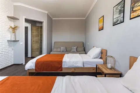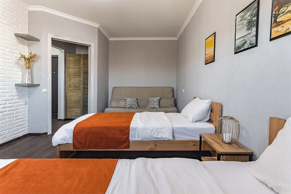 2 ОДНОСПАЛЬНЫЕ КРОВАТИ + РАСКЛАДНОЙ ДИВАН✨ ДО 4 ГОСТЕЙ ✔️ Светлая 1-комнатная квартира с лоджией. Расположена в районе с хорошо развитой инфраструктурой. В пешей доступности магазины, кафе, аптеки, продуктовый рынок, обустроенная прогулочная зона у озера. ✔️ Идеально подходит как для небольших поездок, так и для длительных командировок. ⭐Почему этот вариант от компании "Стрелка - гостевые квартиры" лучший для Вас: ✅ Самостоятельное заселение/выезд в удобное для Вас время (установлен электронный замок); ✅ Кухня с плитой, духовкой, холодильником, чайником и микроволновкой; ✅ Посуда и кухонные принадлежности для приготовления и приема пищи; ✅ Телевизор с плоским экраном, Wi-Fi; ✅ Лоджия; ✅ Чистое и отглаженное постельное белье и полотенца из собственной прачечной для каждого гостя; ✅ Фен, мыло, шампунь, гель для душа; ✅ Стиральная машина, а также все для стирки и глажки белья; ✅ Можно с домашними животными (по предварительному согласованию); ✅ Бесплатная парковка во дворе. Платная охраняемая парковка в пешей доступности; ✅ Хорошая транспортная доступность в любую часть города до любого предприятия и к достопримечательностям. Отличный вариант для комфортного пребывания в городе! ✅ У нас высокие стандарты уборки! Гарантируем чистоту и порядок. При длительном проживании промежуточные уборки и замена постельного белья и полотенец. ★Предоставляем полный пакет отчетных документов. ★Работаем с юридическими лицами и организациями. ★Оплата любым удобным способом. ПРАВИЛА ПРОЖИВАНИЯ: ✨При регистрации необходимо предоставить паспорт и подписать электронный договор. ✨Время заезда после 14:00, выезда до 11:00. Ранний заезд и поздний выезд возможен по предварительному согласованию ✨Перед заездом в квартиру взимается залог, возвращается в день выезда по результатам проверки квартиры и при условии соблюдения правил проживания ⛔Курение, в том числе электронных сигарет и кальяна, в помещении запрещено! ⛔Только для тихого проживания, мероприятия, вечеринки и громкие посиделки запрещены! ⭐Подapитe ceбe комфортный oтдыx со вcеми удобcтвaми в Апaртамeнтаx "Стрелка"!⭐ ▸ 200 метров до продуктового магазина "Перекресток" ▸ 700 метров до продуктового магазина "Ашан", Бурнаковского продуктового рынка, кафе "Сели-съели", пиццерии "ПиццаФабрика"; ▸5 км (10 мин на авто) до ЖД вокзала, ТРЦ "Седьмое небо" (магазины, кафе, кинотеатр, фудкорт), Нижегородской ярмарки, Нижегородского цирка, Футбольного Стадиона, Стрелки (слияния Оки и Волги) и Собора Александра Невского; ▸8 км до исторического центра города (15 минут на авто); ▸6 км до Сормовского парка и Зоопарка Лимпопо (15 минут на авто); ▸ 11 км до ТЦ «Океанис», Аквапарка и парка Швейцария (20 мин на авто); ✈️ От аэропорта Стригино – 40 минут.