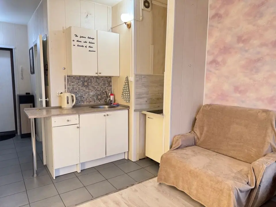 Сдаётся чистая и светлая студия в зелёном районе с развитой инфраструктурой. Рядом находятся магазины, аптеки, пекарни, кафе, салоны красоты и остановки общественного транспорта. До метро «Ладожская» — 10–15 минут на транспорте. Неподалёку — парк Малиновка и торговый центр «Июнь».