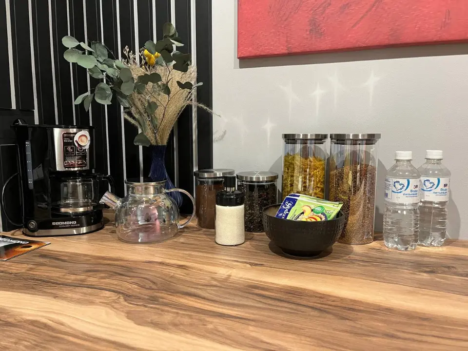 В квартире Вас ждут шикарная двуспальная кровать с матрасом 180*200 и свежим постельным бельем.