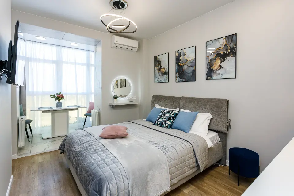Для командированных работников и гостей города предлагается красотка - студия с потрясающим с видом на Амур. Вы будете в восторге от красивых рассветов и шикарных закатов. Квартира расположена в красивом районе города, вдали от шума и городской суеты, но при этом у Вас будет шаговая доступность в центр города. А после насыщенного дня, у Вас будет возможность приятно отдохнуть на большой кровати, на комфортном ортопедическом матрасе.