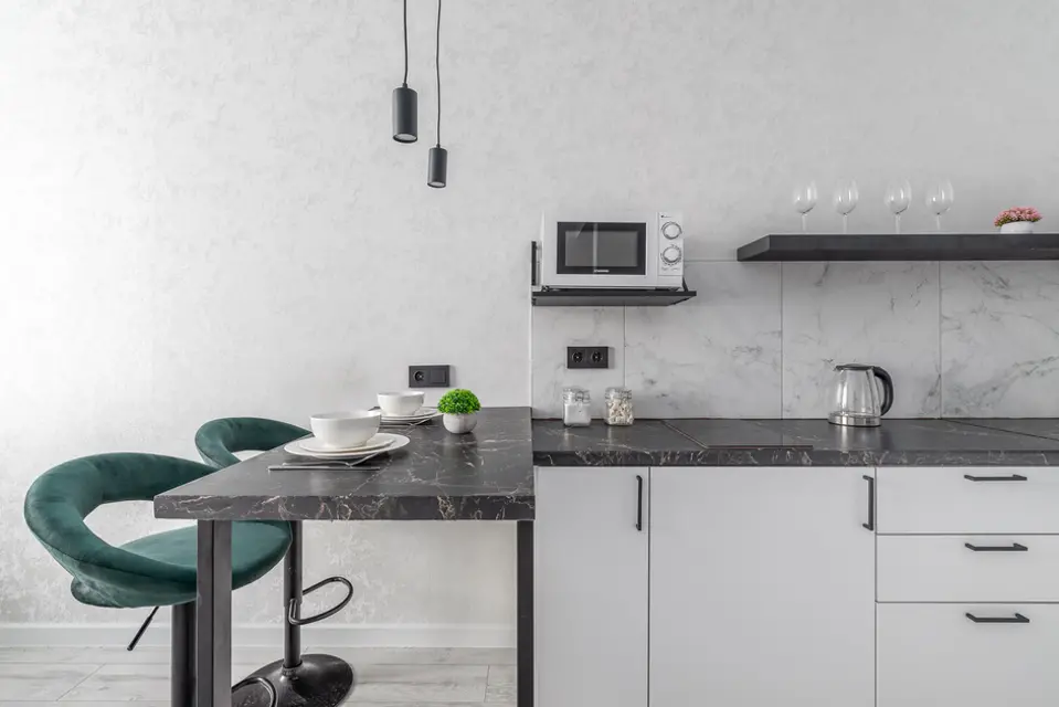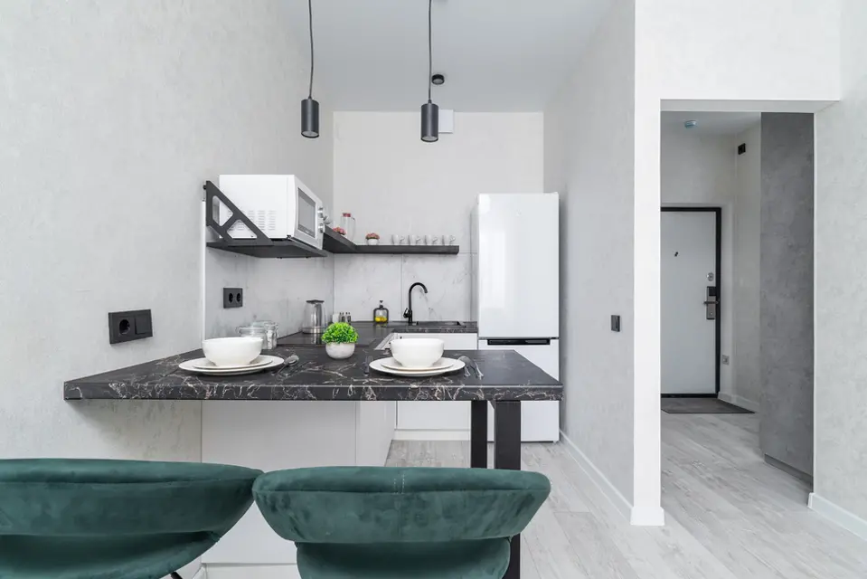 ❒ Полностью укомплектованная мебелью и посудой кухонная зона