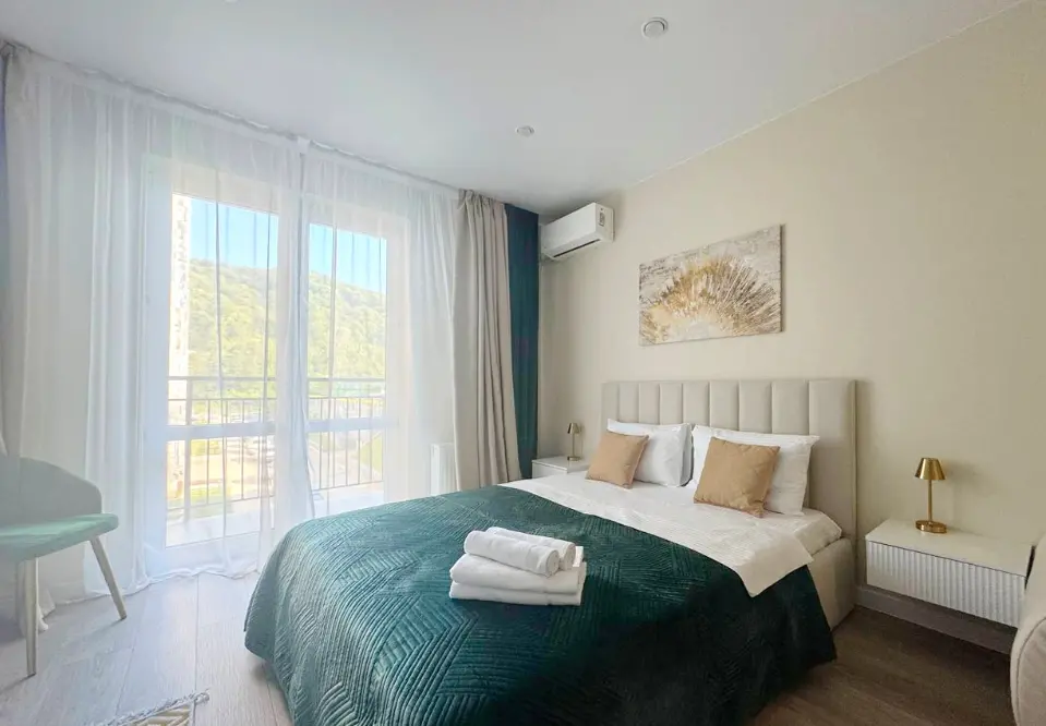 Представьте: вы возвращаетесь с прогулки по собственной набережной жилого комплекса и устраиваетесь на балконе с чашкой кофе. За окном — тишина долины Кудепсты, зелень и свежий воздух. В квартире всё новое: свежее бельё, мягкие халаты, чистая посуда. Это не просто жильё — это ваш личный оазис вдали от городской суеты, где можно по-настоящему расслабиться.