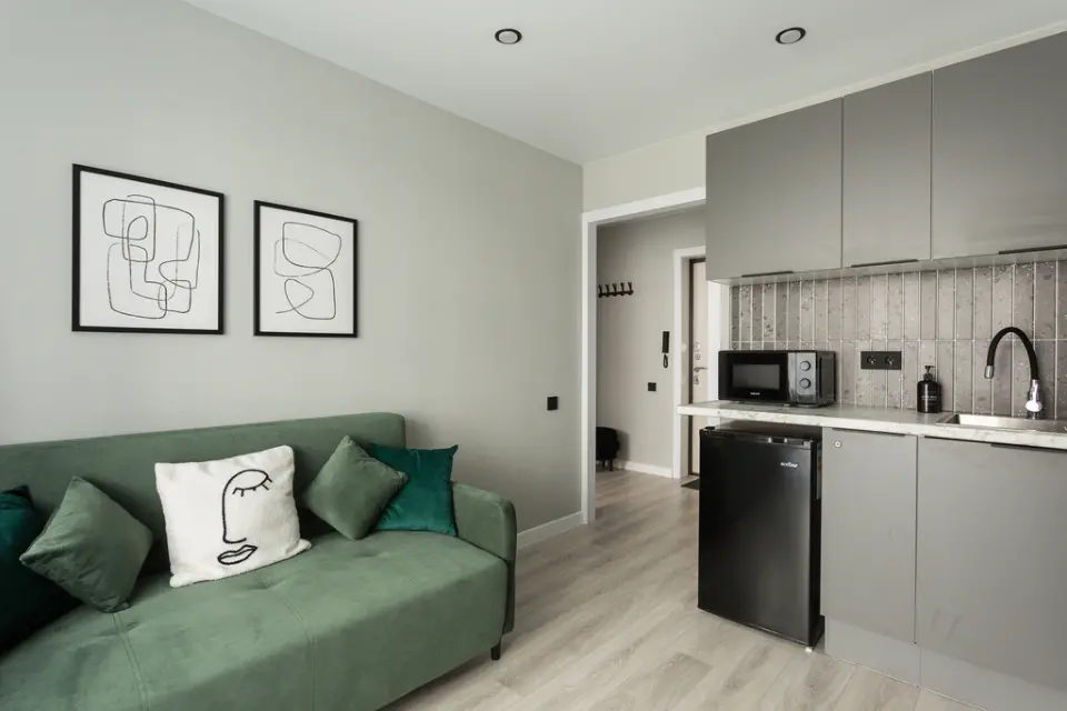 • Оборудованная кухня (холодильник, варочная панель, микроволновая печь, чайник)