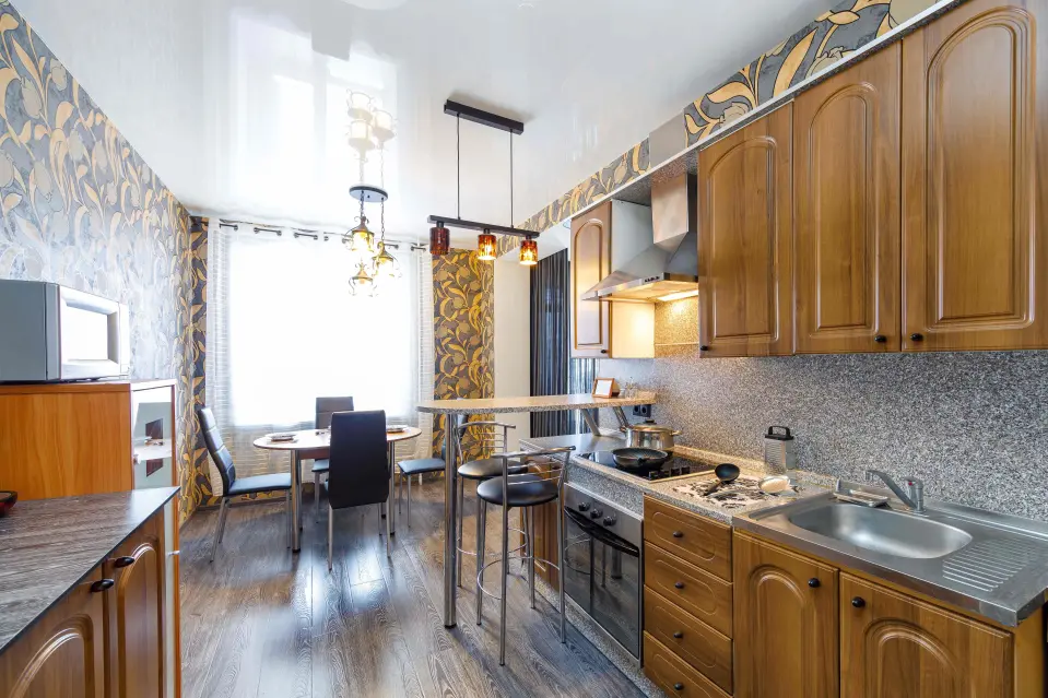 - Кухня оборудована всей необходимой бытовой техникой (плита, холодильник) и посудой