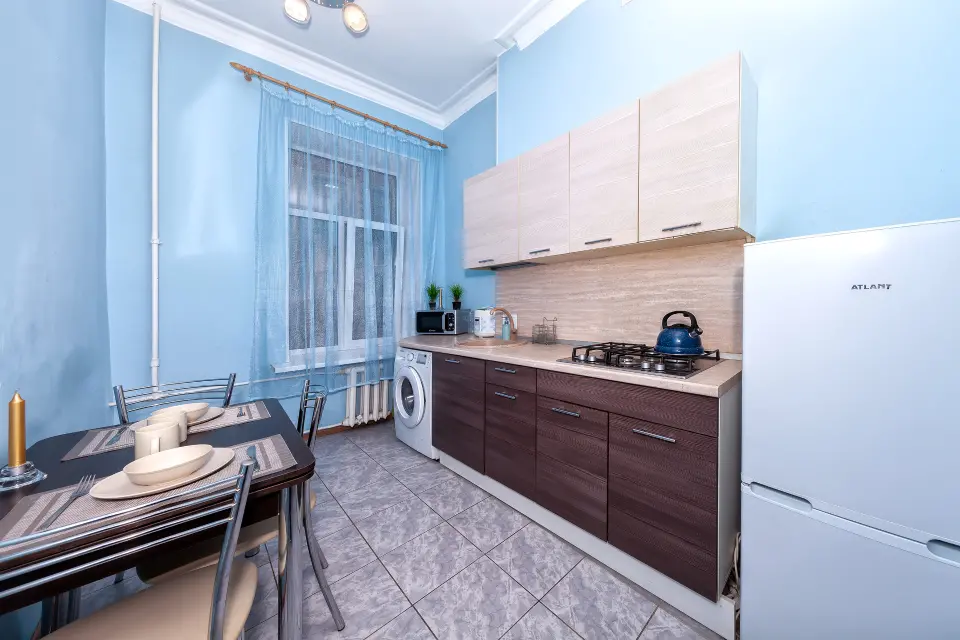 Квартира расположена в историческом центре города на улице Рубинштейна, известной как улица-праздник. В теплую летнюю ночь эта улица живет и пульсирует сильнее, чем Невский проспект или Дворцовая площадь. Будьте готовы погрузиться в мир гастрономических удовольствий, ведь здесь буквально в каждом доме обязательно найдется кафе, бар или ресторан.