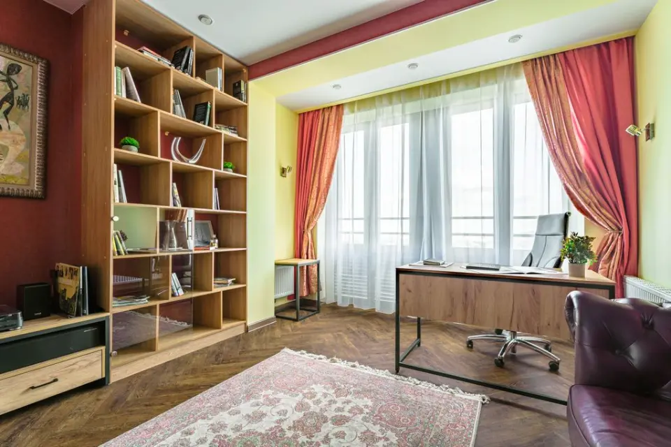 - Кабинет с удобным креслом и большой рабочей зоной чтобы можно было уединиться в собственных мыслях или наслаждаться утренним кофе.