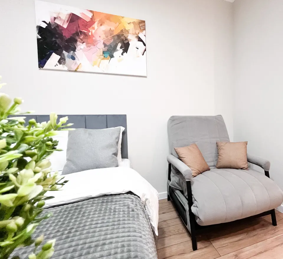 - Уютная квартира с двуспальной кроватью и раскладным креслом.