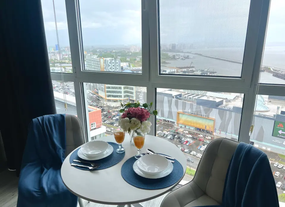 У Вас будет возможность насладиться красивым видом с чашечкой кофе или чая на лоджии . В пешей доступности находятся дирекция РЖД (Пионерская 1Е) , Транснефть (Запарина 1), УК БСМ (пер. Фабричный 2), а также крутой на Дальнем Востоке торгово-развлекательный центр Броско Молл и новый корпус Броско Волна с Аквапарком.