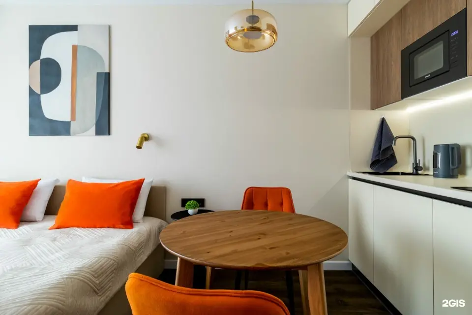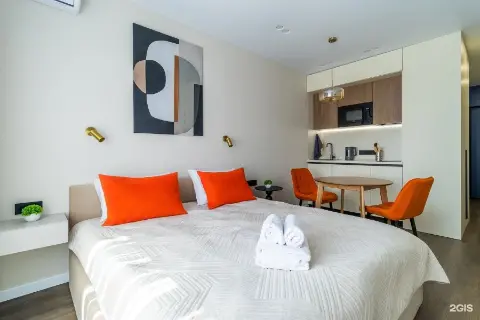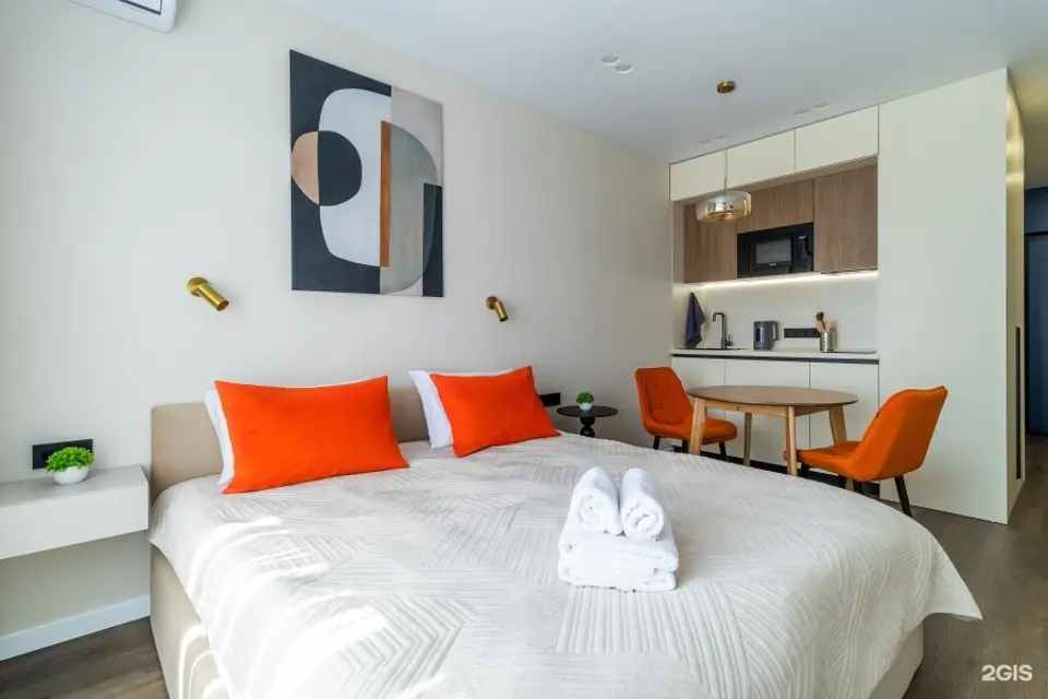 Яркие и стильные апартаменты Maison №235 - 26 м2 порадуют вас своим уютом и дизайнерской отделкой. Она вмещает до 2х гостей и предлагает все необходимое для комфортного проживания: двуспальная кровать, постельное белье, телевизор, Wi-Fi, полноценная кухня, обеденная зона, с полным набором посуды, кондиционер. Санузел оборудован: душевая кабина, стиральная машина, порошок, фен, набор полотенец, тапочки, ванные принадлежности, зубной набор, а также утюг/гладильная доска. К Вашим услугам: чайный сет, сладкий комплимент, питьевая вода, средство для мытья посуды. Студия расположена на 2 этаже. Добро пожаловать в Апартаменты на Родионова Nort! ℹ️ В апартаменты не заселяем лиц моложе 18 лет без сопровождения родителей (взрослых). ℹ️ Стандартное время заезда с 14 часов, выезда до 12 часов. ℹ️ Поздний выезд и раннее заселение согласовываются индивидуально. ℹ️ Для заезда Вам необходимо иметь при себе паспорт или в/у. ℹ️ Размещение с животными - запрещено. ℹ️ Детская кроватка - стоимость услуги 1000 рублей в сутки ℹ️ Дополнительная кровать - стоимость услуги 1000 рублей в сутки. Размер 80*190 см. ℹ️ Охраняемая подземная парковка - услуга платная, бронируйте место заранее. ℹ️ Уважаемые гости, время работы ресепшена с 08:00 до 22:00. Если Вы приезжаете позже, пожалуйста свяжитесь с нами в рабочее время, чтобы мы выслали инструкцию по заселению.