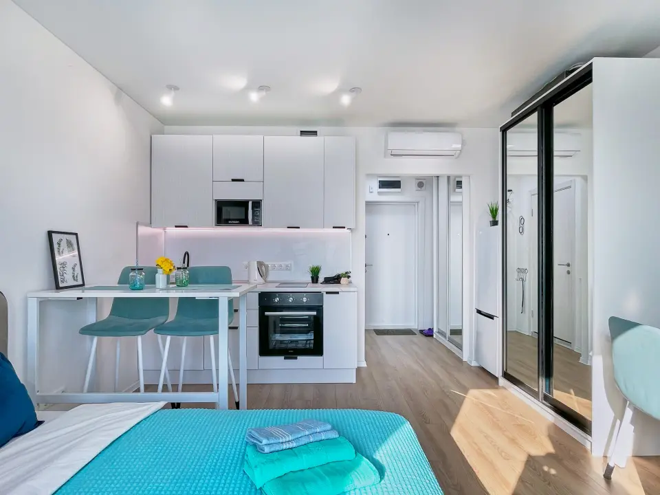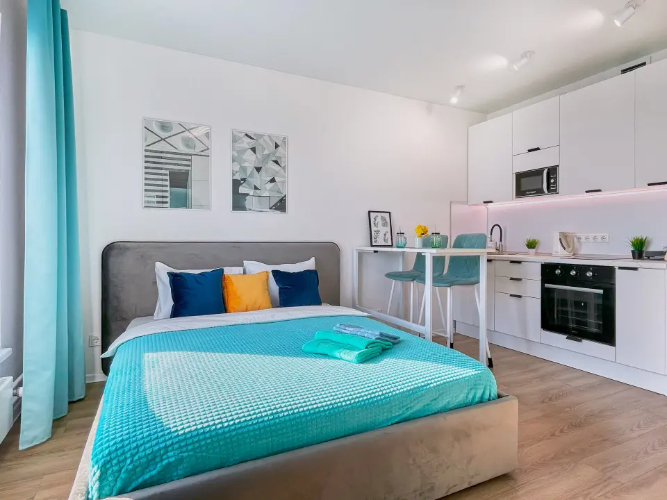 Предлагаем вашему вниманию светлую и современную студию для комфортного проживания на короткий срок в современном жилом комплексе. Она идеально подойдет для пар, друзей или деловых путешественников, ценящих уют и удобство!