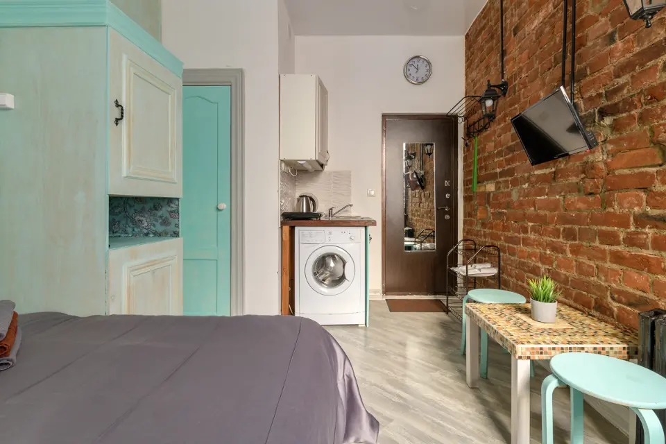 Студия с современным и практичным ремонтом в стиле ЛОФТ для 2-х гостей в самом Центре города.