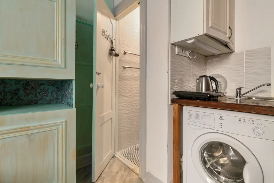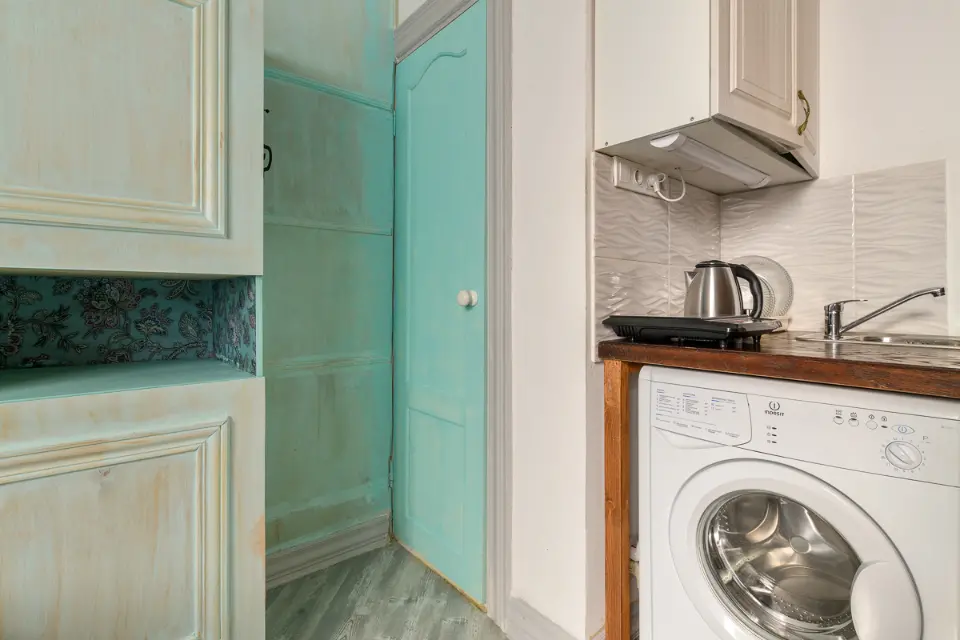 В квартире есть все необходимое для комфортного проживания: двуспальная кровать, шкаф, тумба, мини-кухня, санузел.