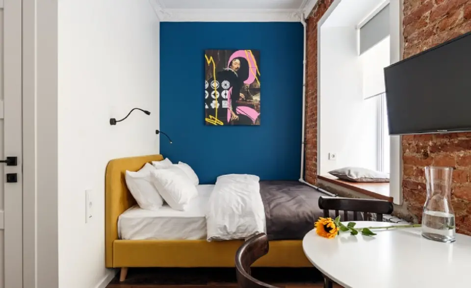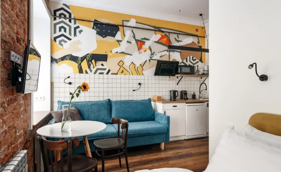 Продуманная до мелочей студия вместимостью до четырех человек с возможностью самостоятельного заезда. Удобное расположение в самом центре ресторанно-барной жизни Петербурга: в трёх минутах от площади Пяти Углов и улицы Рубинштейна.