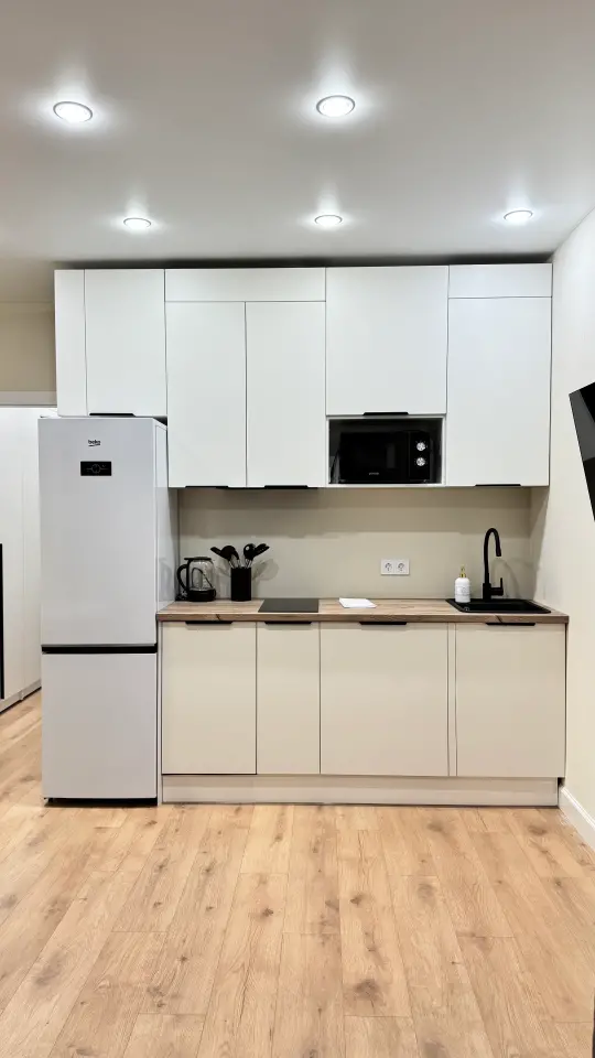 ✔️ оснащение кухни: холодильник, варочная панель, чайник, микроволновая печь, всевозможная кухонная утварь, новая посуда для сервировки и приготовления еды