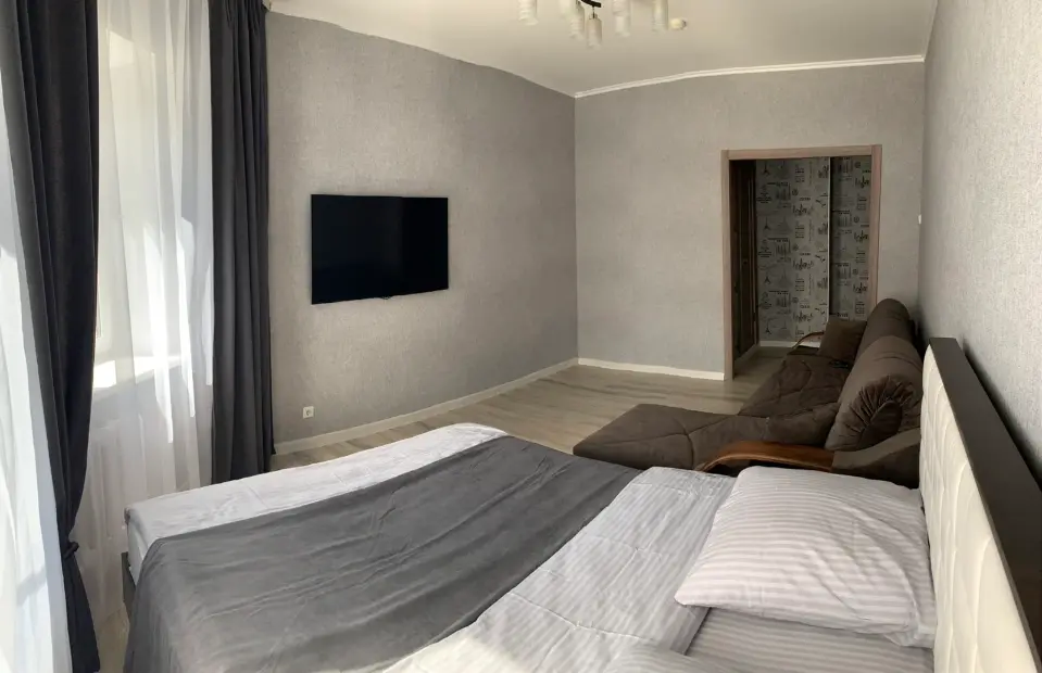 ⭐ Двухспальная кровать с ортопедическим матрасом и диван, который превращается в двухспальное место. Постельное белье. На каждого гостя пo 2 полотенца;