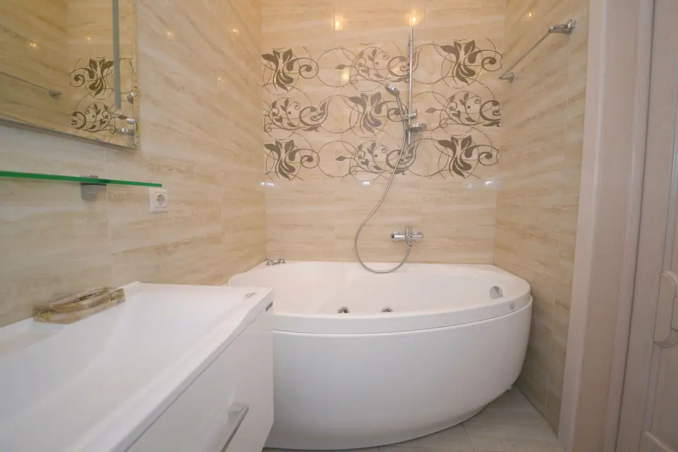 Раздельный санузел с биде, ванна с джакузи, также есть стиральная машина для наших чистоплотных гостей, индивидуальные гели для душа.