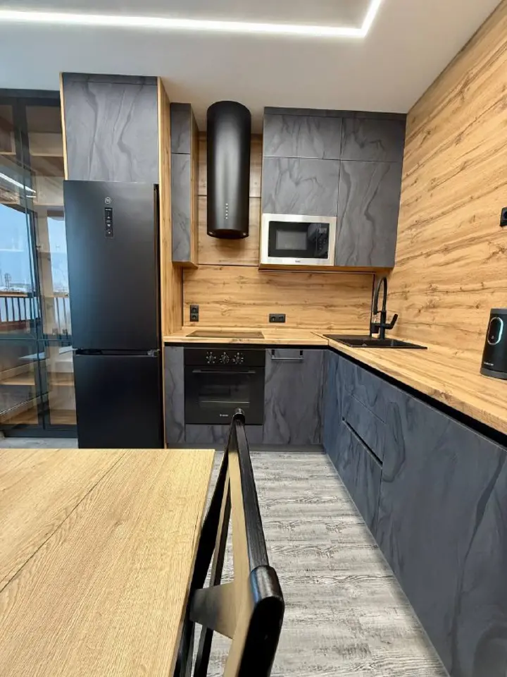 - полностью оборудованная кухня: духовой шкаф, посудомоечная машина, СВЧ, вся необходимая посуда;