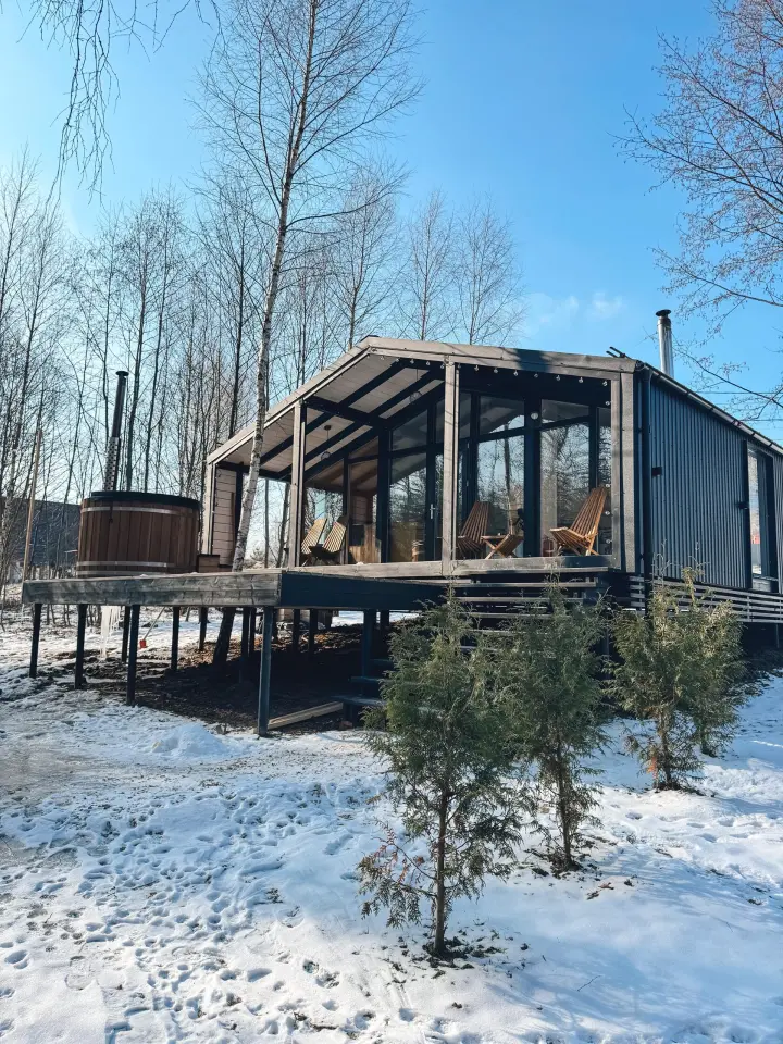 При желании захватите с собой самых близких – возможно размещение до 4х человек. В доме есть отдельная спальня с двуспальной кроватью, а в просторной гостиной находится раскладной диван. По запросу установим детскую люльку.