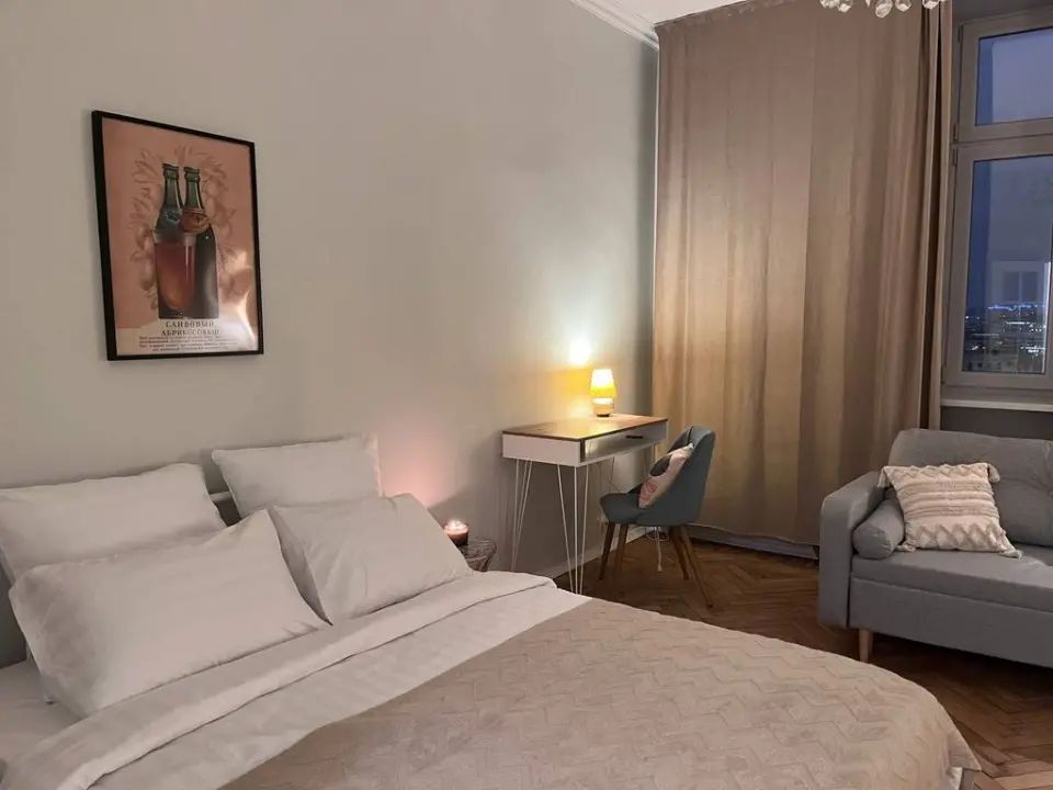 Красивая мебель, продуманное до мелочей оснащение, а также лёгкие советские нотки в элементах дизайна придадут особую эстетику проживанию в апартаментах.