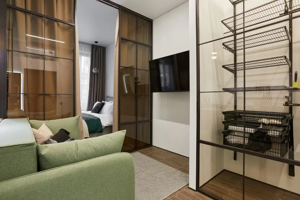 • Рабочая зона, если вам необходимо уединение в работе за компьютером + проведен кабель интернета по всей квартире, если Вам важно стабильное интернет-соединение через провод.