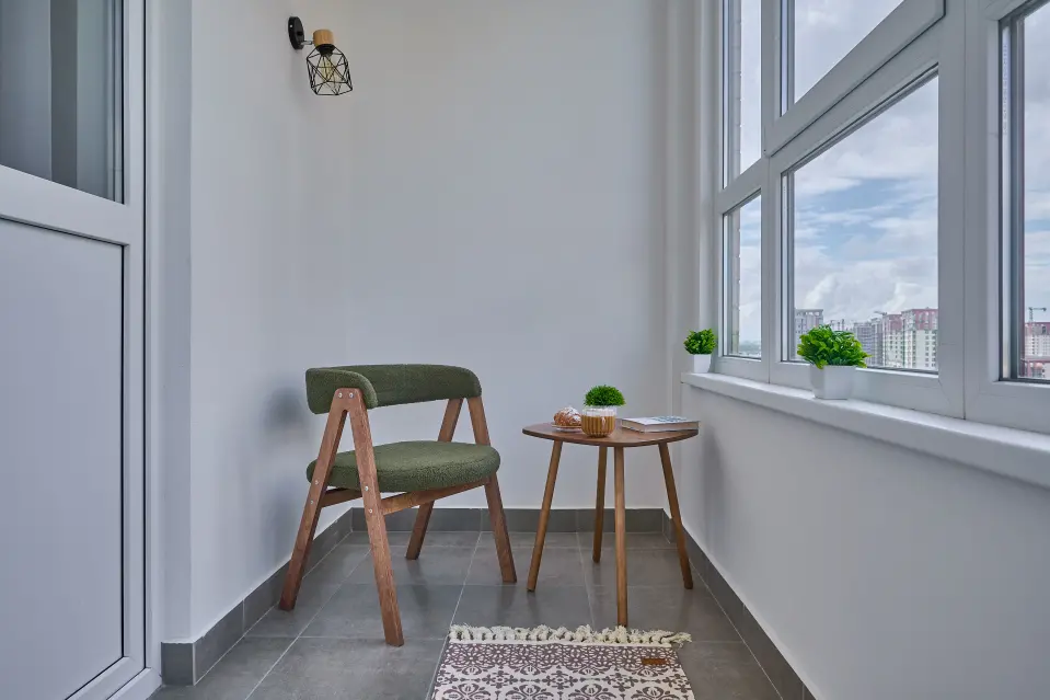 💚Зона отдыха на лоджии с панорамным видом из окна