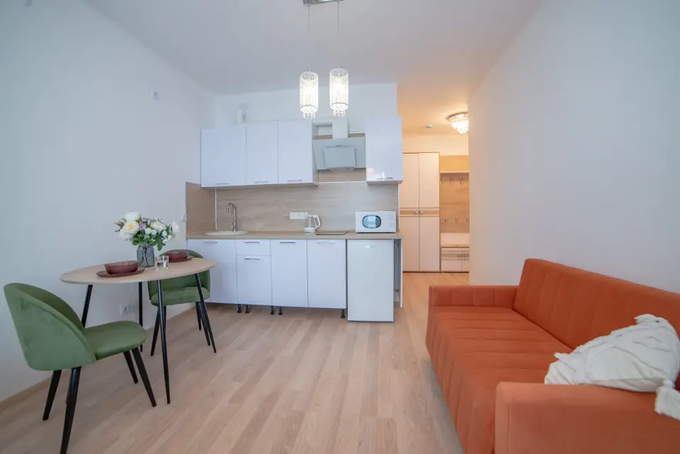* Вместимость: до 4 гостей (двуспальная кровать + раскладной диван)