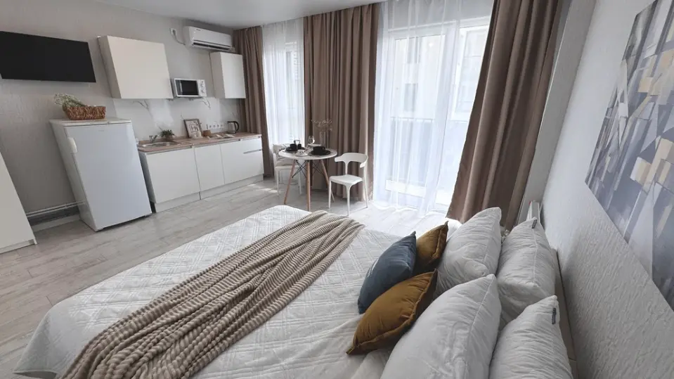 Приветствуем вас в наших уютных апартаментах, расположенных в одном из престижных жилых комплексов города. Этот уголок идеален для продуктивных деловых поездок, романтичных свиданий или активного семейного отдыха.