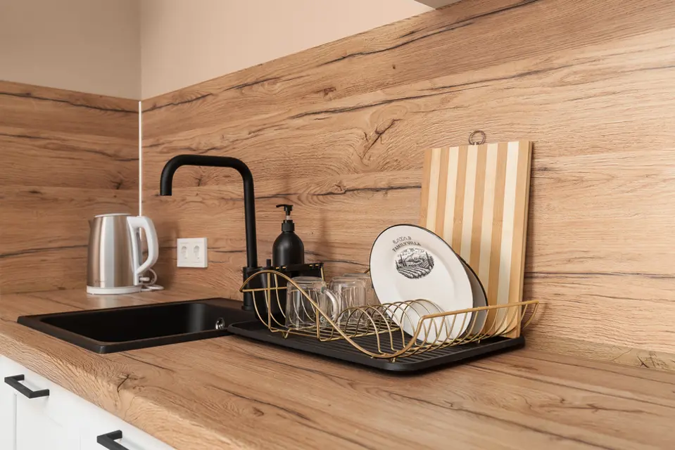 ❒ Укомплектованная техникой и посудой кухонная зона