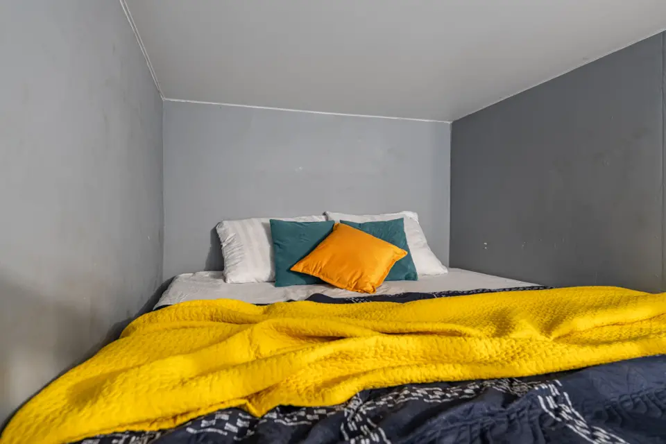 — Удобный двуспальный диван и двуспальное место на втором уровне