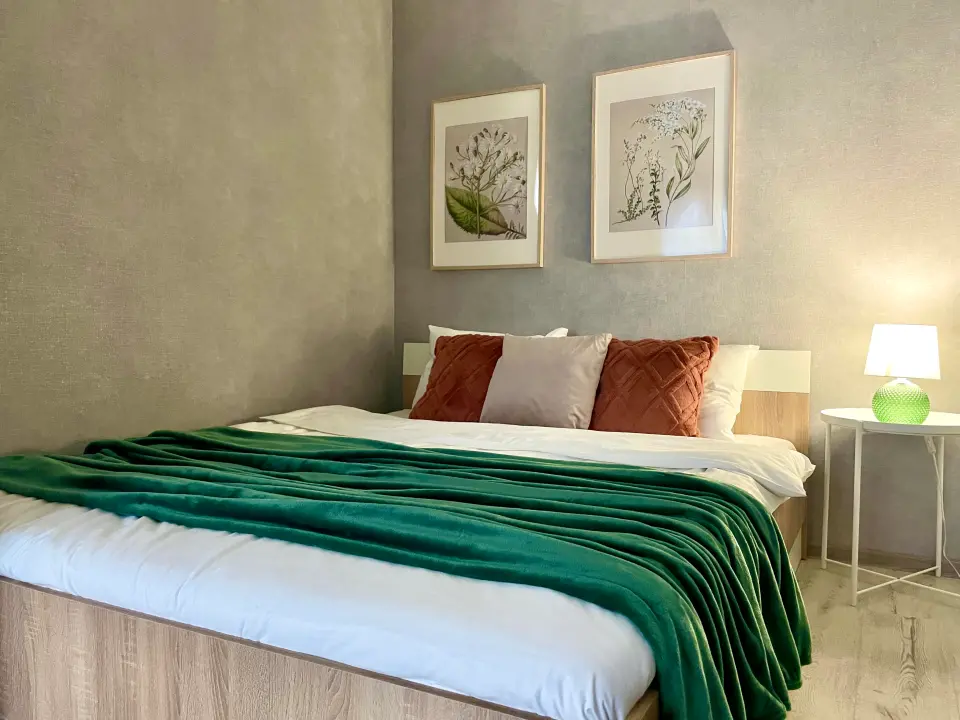 -Большая 2-спальная кровать с удобным ортопедическим матрасом, Диван для отдыха-Телевизор, стиральная машина, сушилка, фен, утюг, гладильная доска, зонтик-Высокоскоростной Wi-Fi-На кухне холодильник, микроволновая печь, электрочайник, плита.-Вся посуда в достаточном количестве.-Свежее хлопковое белое постельное бельё и белые махровые полотенца-Тапочки, шампунь, гель для душа, мыло для рук, чай, кофе, специи, масло и прочие приятные мелочи для комфортного проживания