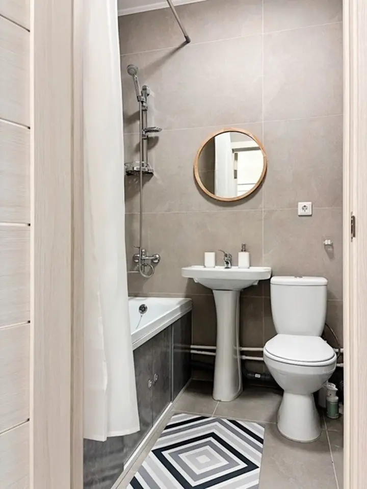 Уютное пространство, идеально подходящее для комфортной жизни. Просторная и светлая комната, кухня оборудована всем необходимым для готовки: плита, холодильник, мойка. Ванная комната стильная и современная, с качественной сантехникой.