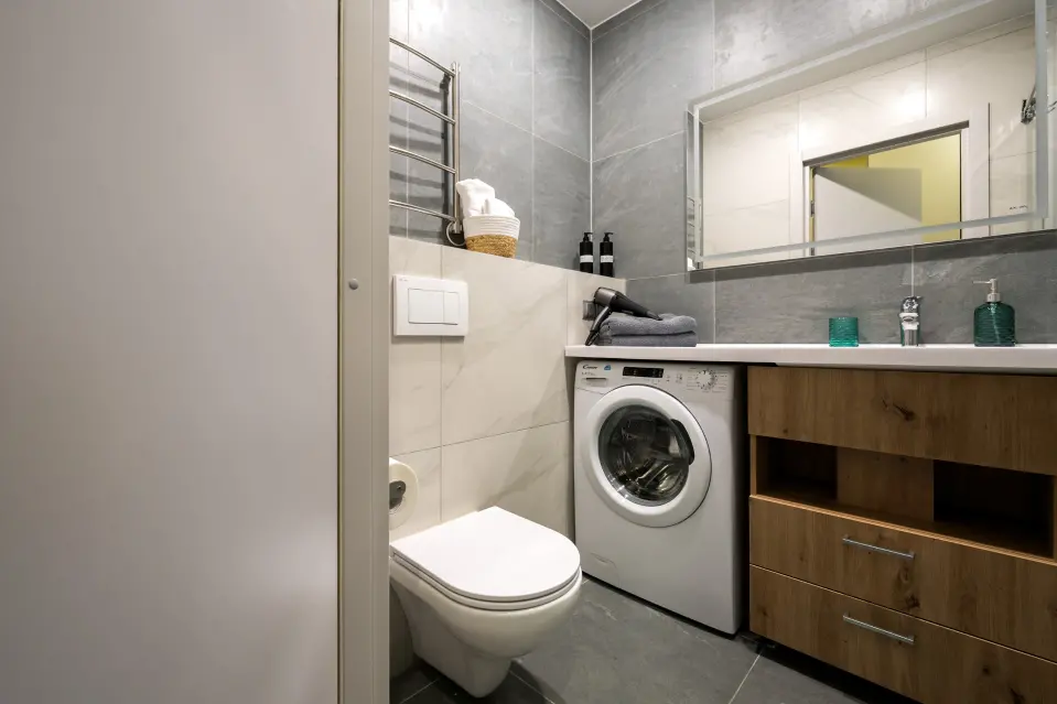 В студии есть все необходимое для комфортного проживания: в Зоне спальни: Двухспальная кровать 160*200(или две односпальных 80*200), прикроватные тумбы, телевизор со SmаtrТV. Полноценная кухня оснащена микроволновой печью, варочной панелью, холодильником и электрочайником, всей необходимой посудой и кухонной утварью, обеденным столом, стульями. Совмещенный санузел включает: душевую, туалет, стиральную машину, фен. К услугам гостей утюг, гладильная доска, бесплатный WI-Fi. В лобби на 1 этаже стильная зона коворкинга, круглосуточный пункт охраны, бесплатная парковка на территории отеля.