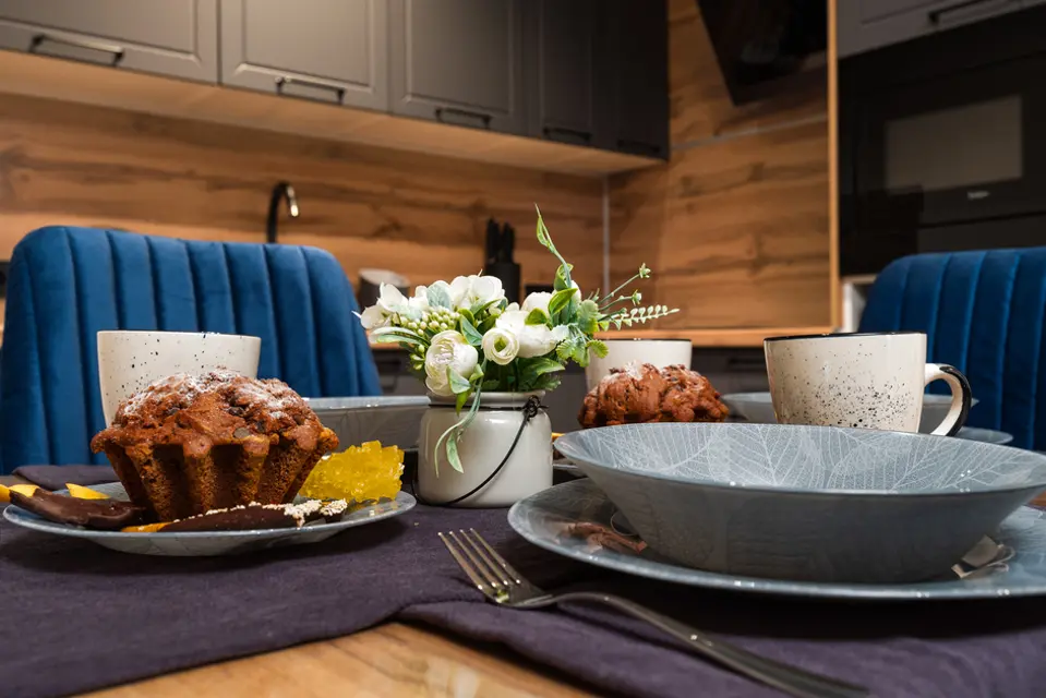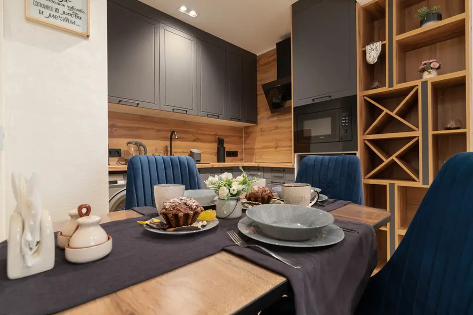 ❒ Укомплектованная техникой и посудой кухонная зона
