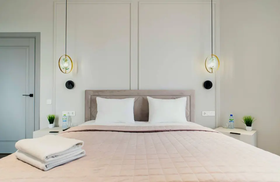 - Просторная кровать с удобным матрасом, постельным бельем из страйп-сатина, словно обнимает теплом, создавая обстановку для полного расслабления. Скоростной Wi-Fi и современное SMART TV.