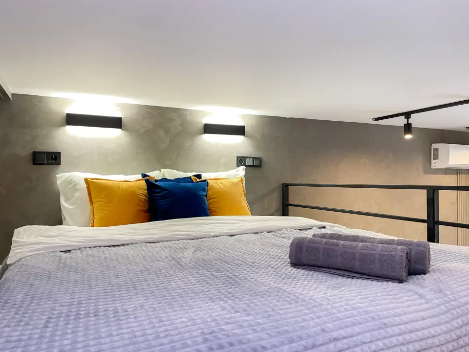 Спальные места - двуспальная кровать с ортопедическим матрасом и раскладной диван.