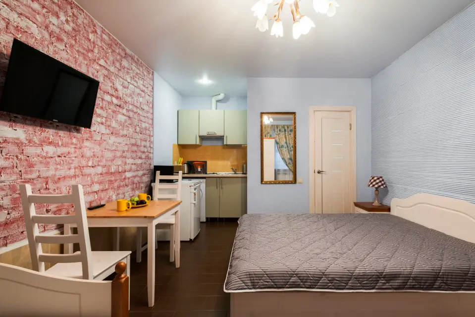 В студии сделан качественный дизайнерский ремонт и есть все необходимое как для краткосрочной поездки, так и для длительного пребывания 3 гостей.