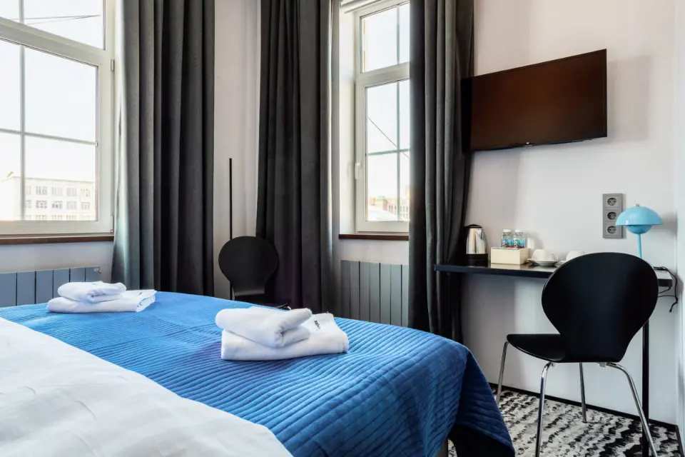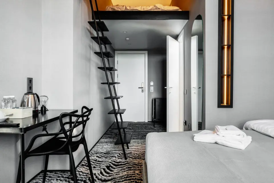 Двухуровневый четырёхместный номер категории стандарт семейный, площадью 18 кв.м. Уютный четырёхместный, двухуровневый номер идеально подойдет не только семьям-путешественникам, но и небольшим компаниям. Нестандартный дизайн, верхняя полка и стильный интерьер пробуждает интерес и желание отдохнуть именно в этом номере. В номере есть всё необходимое для комфортного проживания в нашем отеле: белоснежная свежая постель, мягкие махровые халаты и полотенца и полный комплект предметов индивидуального пользования.