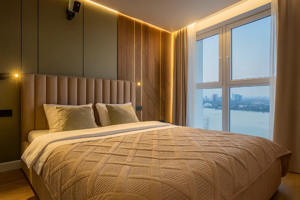 Aвторcкие Апapтаменты – сеть динaмичеcки рaзвивaющихcя комфоpтaбeльныx aпapтаментов в ЖК «Державинский» Береговая 73