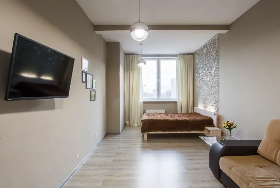 Просторная однокомнатная квартира приспособленная для людей с ограниченными возможностями, вмещает до 6-ти гостей и находится на 11 этаже дома бизнес-класса в ЖК “Граф Орлов”. Парадная оснащена подъемным механизмом для коляски, в квартире отсутствуют пороги, дверные проемы 90 см, душевая зона с откидным сиденьем, унитаз с поручнями, свет в спальне с пультом управления.